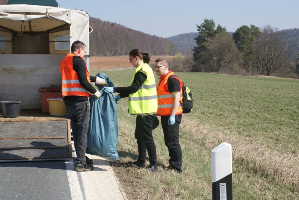 Der stellvertretende Landrat und Bürgermeister der Stadt Parsberg, Herr Bauer, hielt eine Begrüßungsrede zum Thema Müll und Müllvermeidung. Die Teams wurden eingeteilt und zu ihren Startplätzen gebracht und bewegten sich Müll sammelnd sternförmig auf den Samainhof zu.